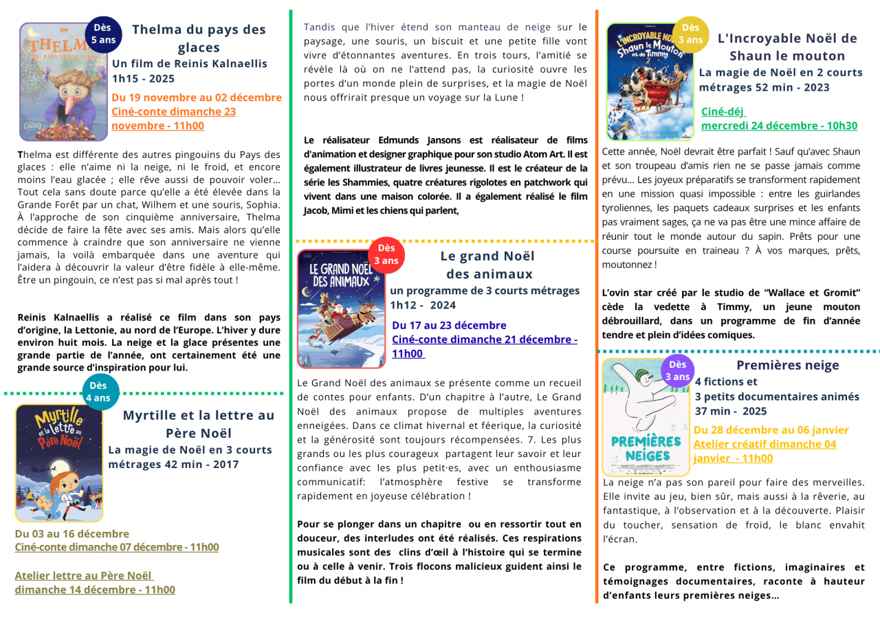 Découvrez le Ciné-Récré et le Ciné-Conte : des séances spécialement conçues pour les tout-petits à partir de 3 ans.